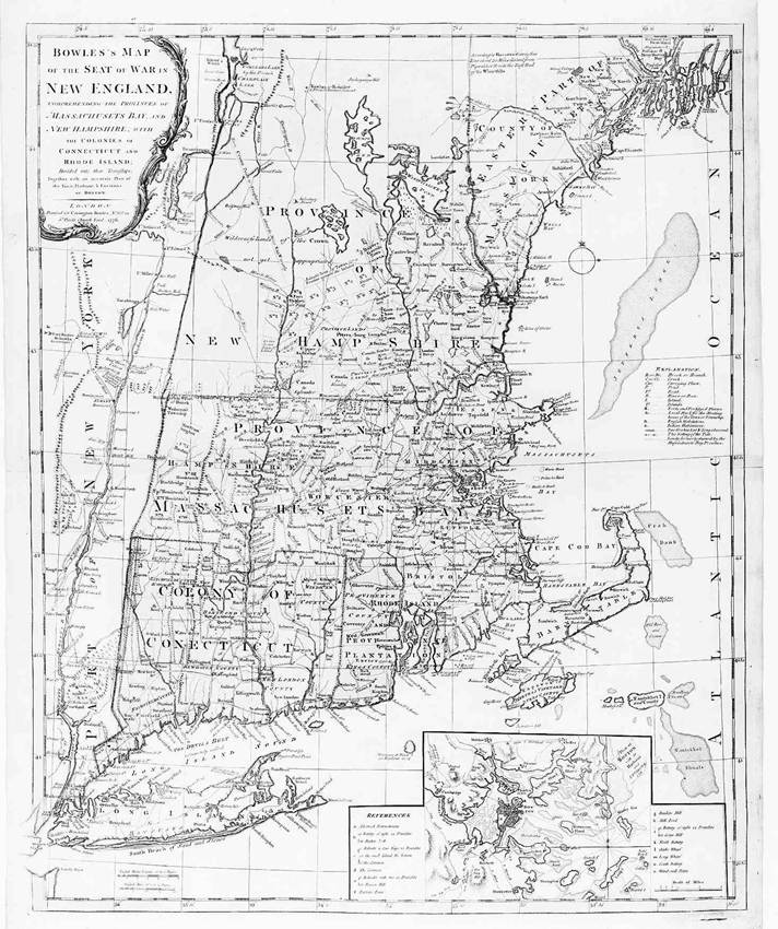 Figure 4 – Carte de Bowles du théâtre d’opérations de Nouvelle-Angleterre – Théâtre Nord – vers 1776