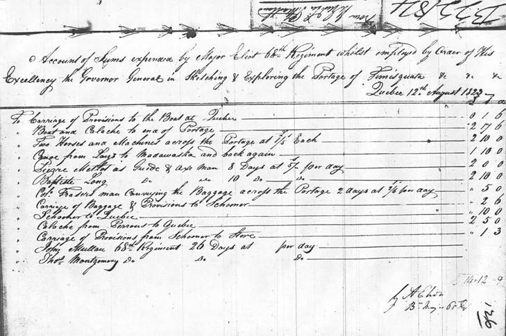 [xviii] Lettre du major Elliott au gouverneur général, le comte de Dalhousie, datée du 10 août 1823, Québec. Source : Bibliothèque et Archives Canada, RG8, Série « C », volume 628.