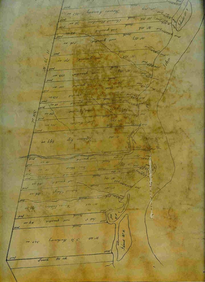 Notre scénario exige de démontrer que les terres de Clair faisaient partie des réserves de la Couronne. À ce jour, nous n’avons trouvé aucune preuve permettant de confirmer cette hypothèse, ni que ces terres faisaient partie des réserves du clergé. Toutefois, l’essor démographique qui a suivi le fleuve Saint-Jean à cette époque n’est certainement pas le fruit du hasard. Les modifications apportées à la législation régissant les réserves du clergé ont peut-être permis à un plus grand nombre de colons d’espérer obtenir des droits d’occupation le long de la rivière, et pourraient avoir constitué un autre élément clé de la décision qui a conduit Philip et ses fils à s’établir à l’embouchure de la rivière Fish (en fait, en face du confluent de ces deux rivières). Nous ne pouvons croire qu’il s’agisse d’un hasard, ni que des parcelles importantes des terres finalement revendiquées et concédées à proximité de ces parcelles aient en réalité été attribuées à des anglophones et non à des Canadiens français ou à des Acadiens.