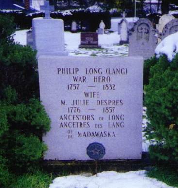 Le certificat de décès de son mari Philip Long, décédé le jour de Noël 1832, mentionnant son âge comme étant de 90 ans, alors qu’il avait selon les plus sûrs calculs environ 75 ans. Ca se passe de même dans ce temps-là. » Mgr. Ernest Lang, Mon Ancêtre Philip Long, page 107.