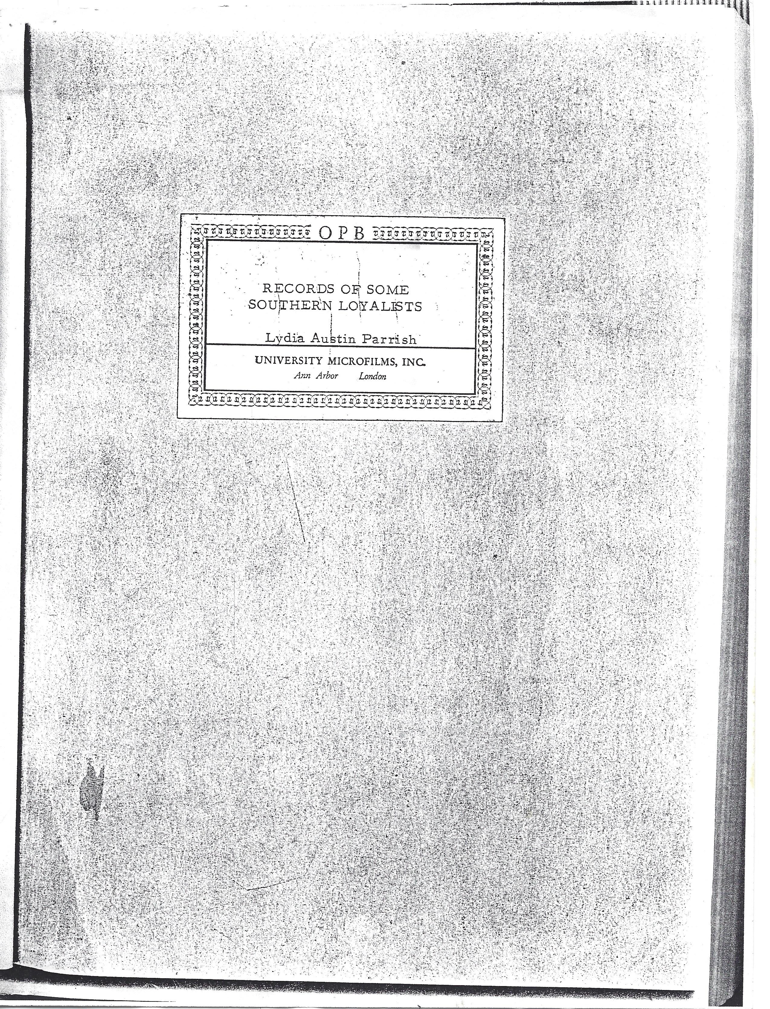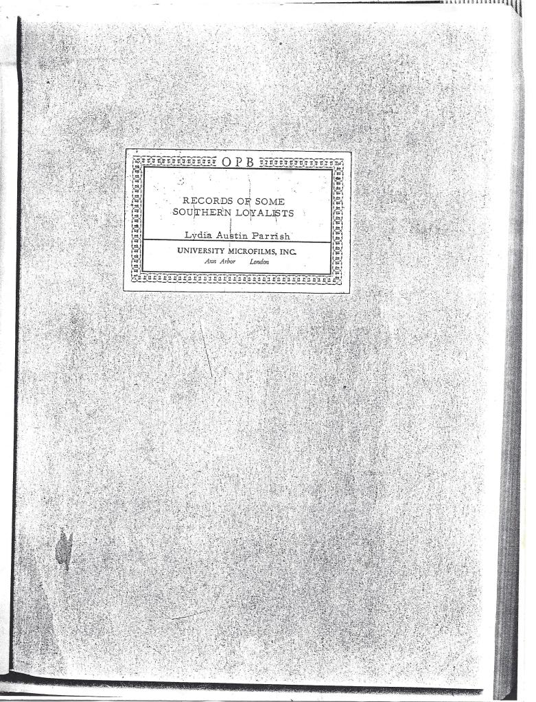 Tiré du Records of Some Southern Loyalists par Lydia Austin Parrish, University Microfilms, Inc., Ann Arbor, London. Source: Ghislain Long